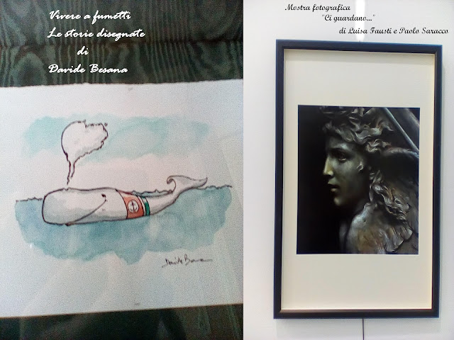 il Ministero della Cultura in questa giornata ha proclamato la "domenica di carta" con l'obiettivo di promuovere e valorizzare il prezioso e immenso patrimonio archivistico e librario, presente in biblioteche e archivi di proprietà dello Stato italiano. A Genova, la mia città, c'erano due proposte e io e la mia famiglia abbiamo scelto di andare alla Biblioteca universitaria, ubicata in via Balbi 40, a pochissimi passi dalla stazione ferroviaria di Piazza Principe. L'edificio, che ospita la biblioteca, era un lussuoso hotel degli anni Venti del Novecento, che è rimasto aperto fino al 1989, e ci hanno pure alloggiato, come mi ha ricordato mio padre durante la visita, i Beatles, quando vennero a Genova per un concerto nel 1965. La scelta è caduta sulla biblioteca perché offriva due mostre a ingresso libero, nonché la possibilità di visitare la maestosa e lussuosa sala da ballo, che ora ospita congressi e concerti. La prima mostra era "Vivere a fumetti. Le storie disegnate di Davide Besana", in cui c'erano illustrazioni tecniche sul mondo della vela, ricette culinarie, informazioni per proteggere il mondo marino dall'inquinamento e divertenti prese in giro sulla vela e non solo, che il famoso scrittore, giornalista, velista e gastronomo ha raccolto per raccontare la sua vita. L'altra mostra era una raccolta fotografica personale di Luisa Fausti e Paolo Saracco, intitolata "Ci guardano...", in cui erano raffigurate le statue più intriganti che sono disseminate all'interno del cimitero genovese di Staglieno. E' stata una bellissima domenica da trascorrere in famiglia immersi nella cultura. Speriamo che questa iniziativa del Ministero della Cultura continui, perché sono curiosa di conoscere nuovi aspetti del patrimonio archivistico e librario italiano. Ora vi saluto, invitandovi a visitare le mostre "Vivere a fumetti", che si concluderà il 18 ottobre, e "Ci guardano...", che ci sarà fino all'8 novembre,(se foste interessati ad andarci, potrete farlo il martedì e il giovedì dalle ore 08.30 alle 18.30 e il mercoledì e il venerdì dalle 08.30 alle 14.30). Vi lascio un'immagine con gli elementi che mi sono piaciuti di più delle due mostre ;)